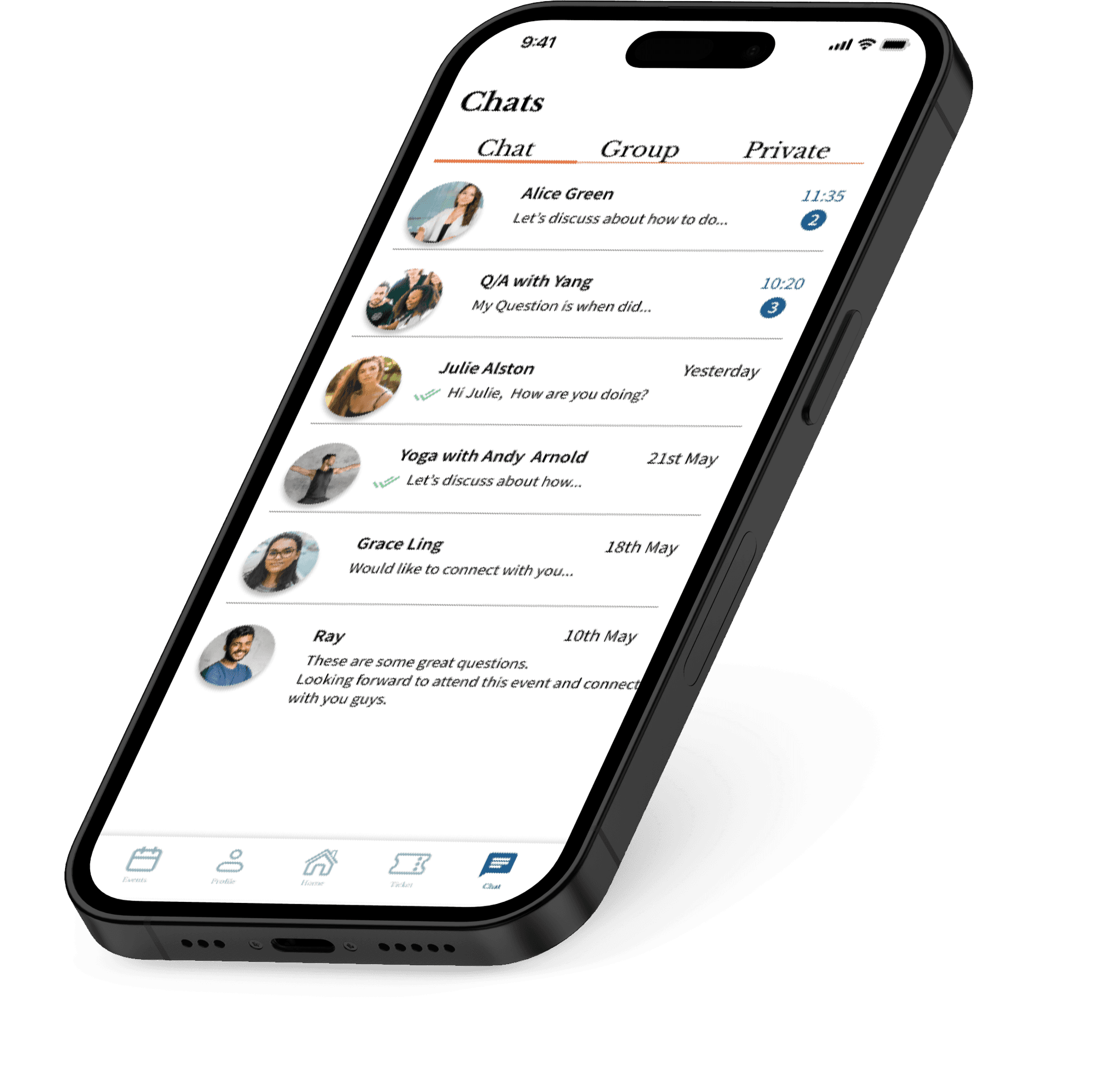 Connect with peers through group chats or private messages, enhancing your event experience and make new connections.